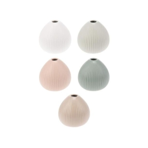 Vase rundstripet keramikk 10x10cm Lys Grå