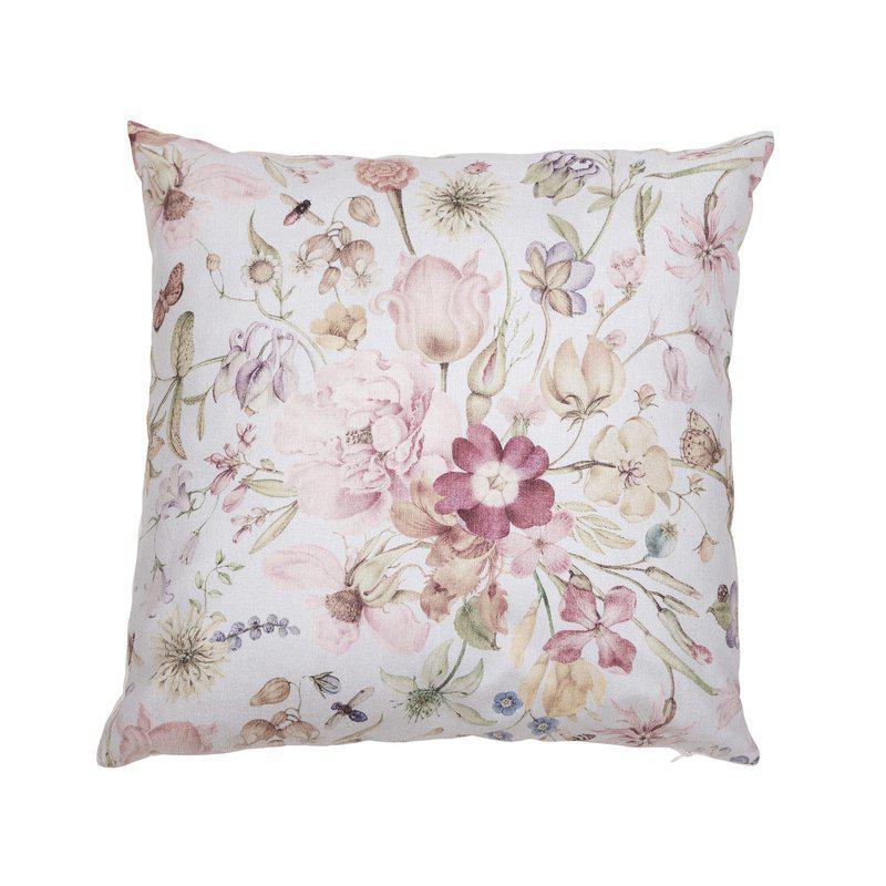 Putetrekk med et romantisk blomstermønster på forsiden, laget i et mykt og behagelig materiale som gir en god følelse. Baksiden er ensfarget i en matchende tone, noe som skaper en fin balanse mellom mønster og enkelhet.