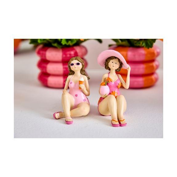 BEACH LADIES SITTING 11X10 CM PINK POLY 2 ASS.