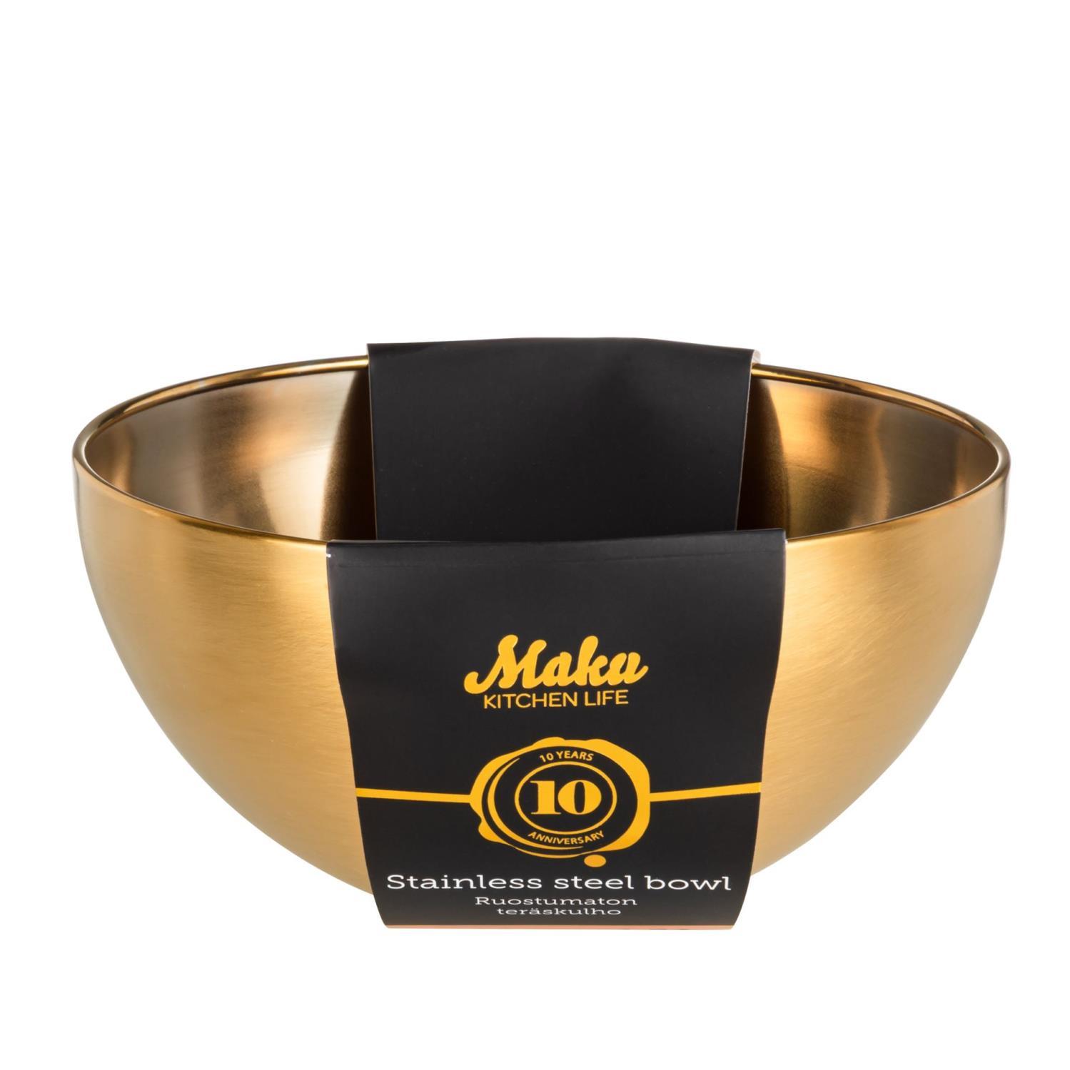 Bolle i rustfritt stål for matlaging, servering og oppbevaring. Rustfritt stål er lett å rengjøre og har svært lang levetid. Kapasitet 3,5 L. Tåler oppvaskmaskin. Kommer i en delikat gullfarge