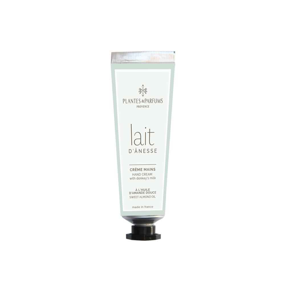 Håndkrem fra franske Plantes & Parfums. Den inneholder eselmelk og bomullsekstrakt, som bidrar til å beskytte og lindre tørr og sensitiv hud. Kremen har en rik og silkeaktig tekstur, og etterlater hendene myke med en mild duft av mandel. Eselmelk er foryngende, og kjent for sin oppstrammende effekt på huden.