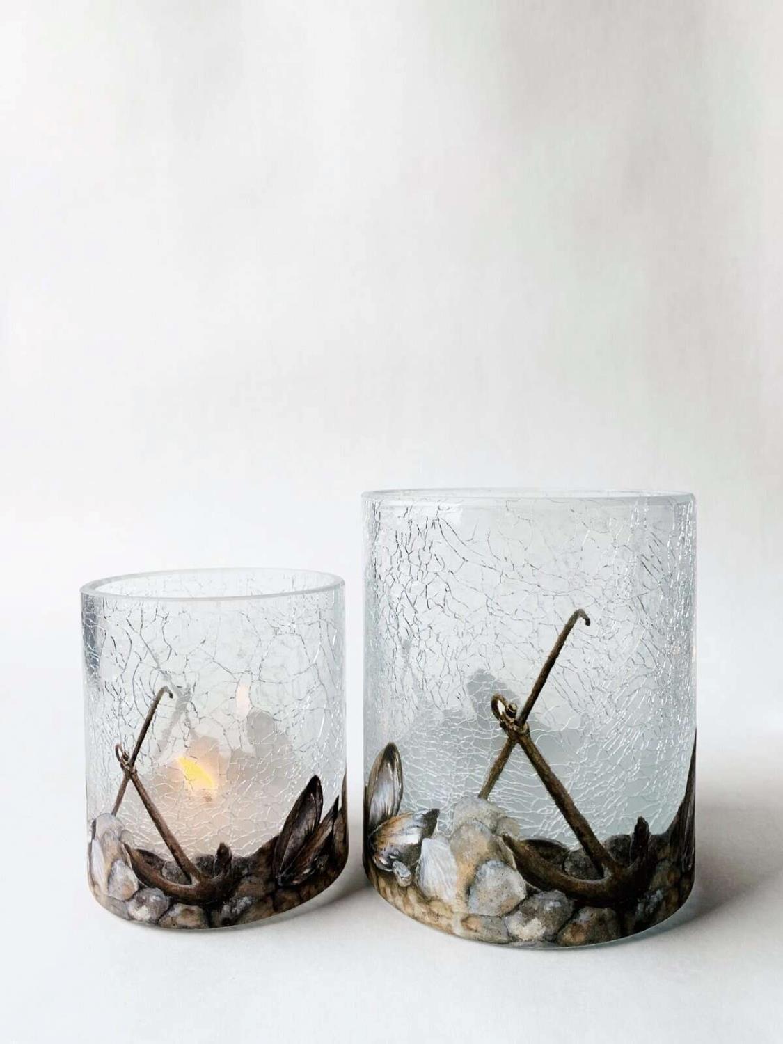 Lysglass Krakelert frostet Blåskjell/Anker 9×10 cm