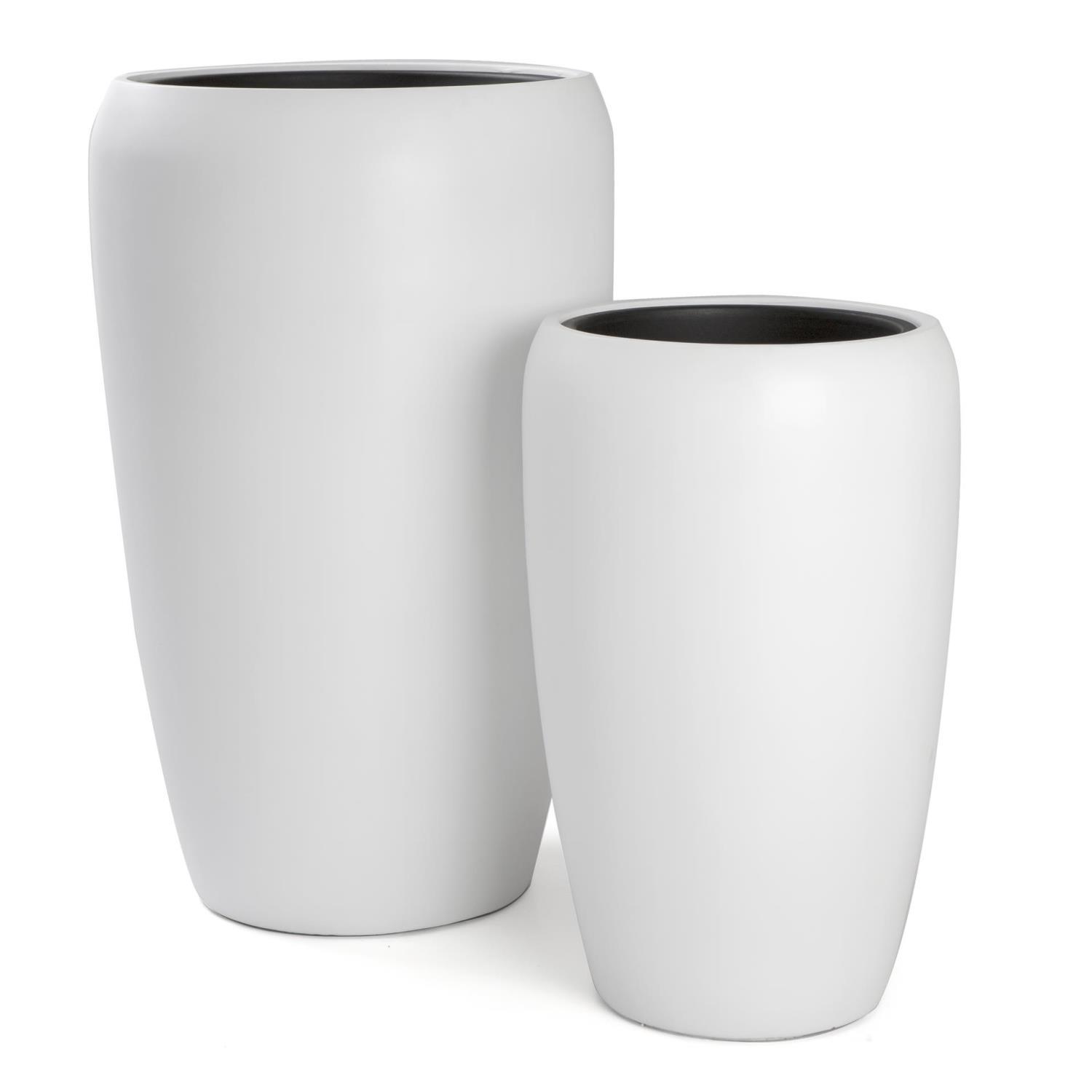 Dekorative potter i farget fiberstone.Praktisk innerpotte i plast for passelig med jord til dine planter. Pynter både utendørs og innendørs.