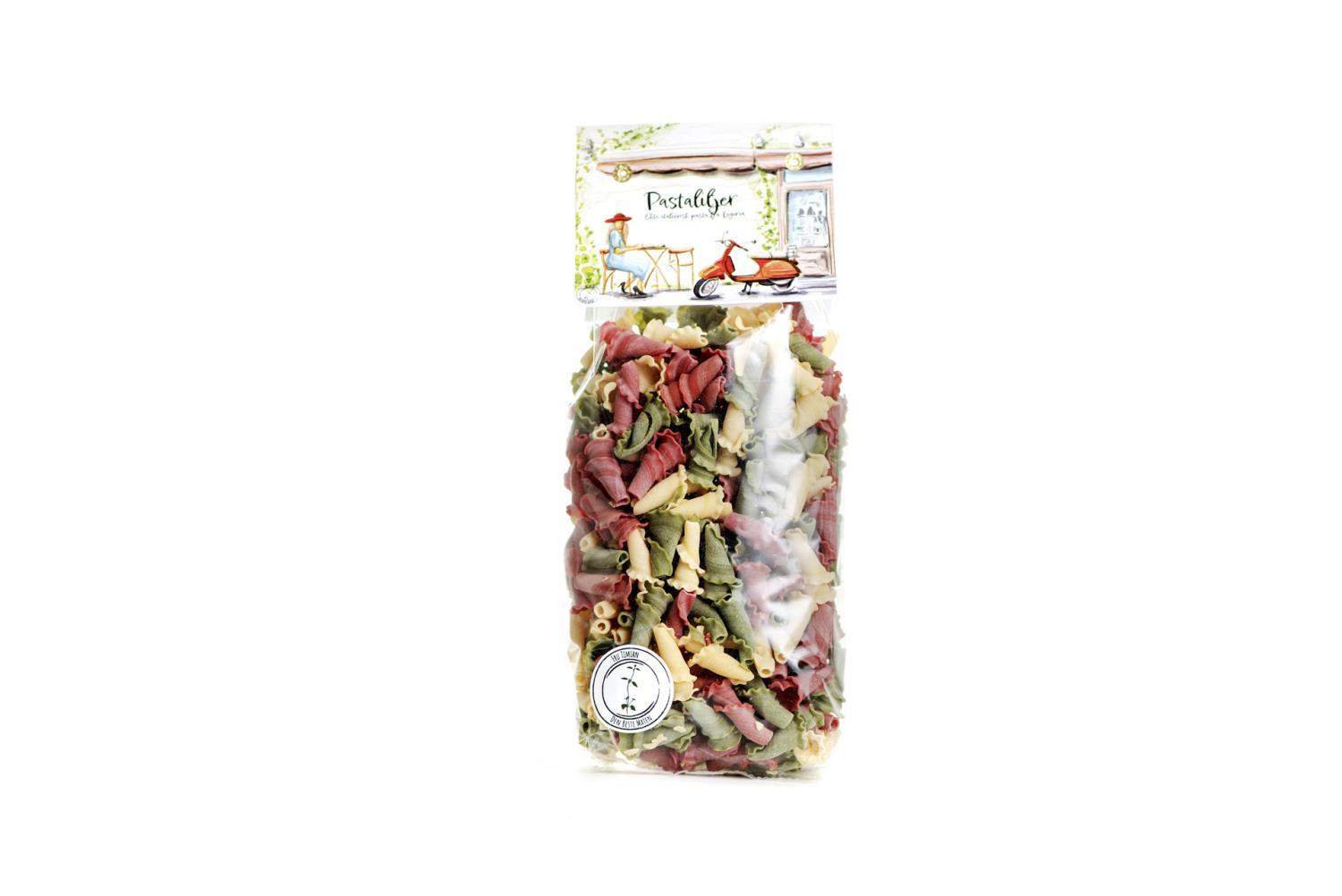 Herlige PASTALILJER i tre farger laget med en stolt håndverkstradisjon av familiebedriften Antica Madia i Liguria i Italia. Pastaen er laget av durumhvete og vann, og er smakssatt med spinat, rødbeter og tomat. Bare naturlige råvarer! I Italia kaller de denne pastafasongen for GIGLI, men ettersom vi snakker bedre norsk enn italiensk her hos Fru Timian, har vi gitt dem det norske navnet LILJER. Kan du se at de ser ut som liljer?