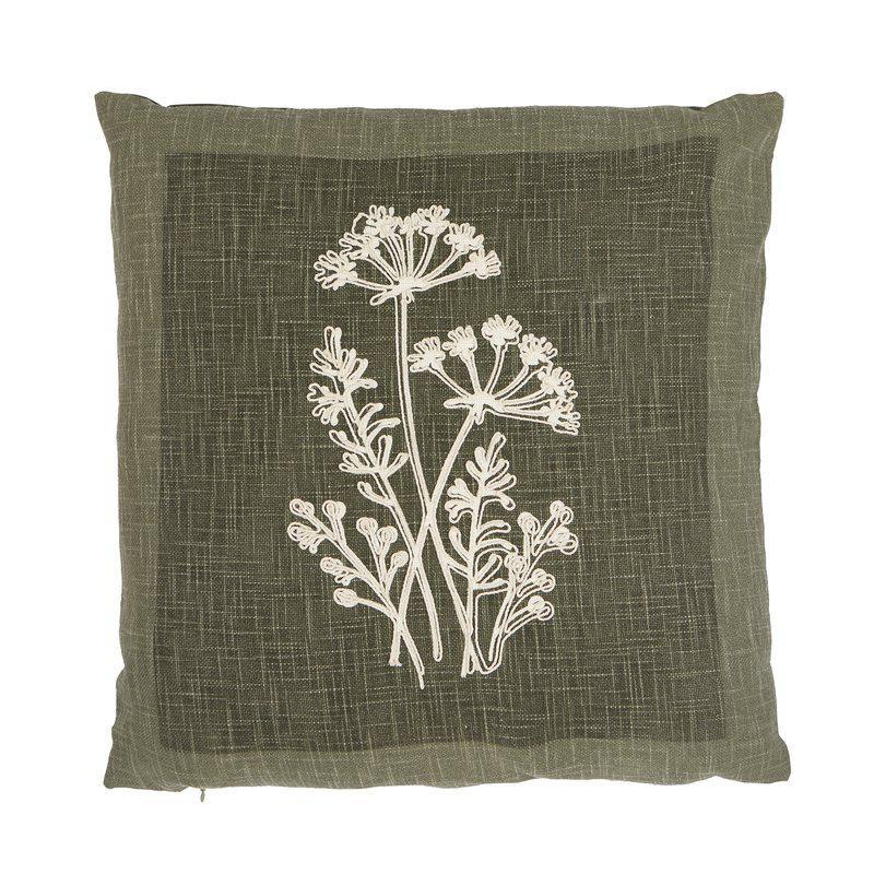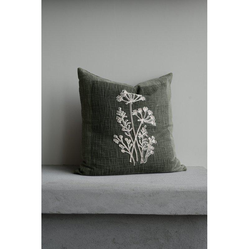Putetrekk i grov bomullsslub, der forsiden har en trykt bunn som gir designen dybde, og i tillegg et brodert mønster som tilfører en følelse av håndverk. Den ensfargede baksiden skaper balanse og gjør putetrekket enkelt å kombinere med andre puter.