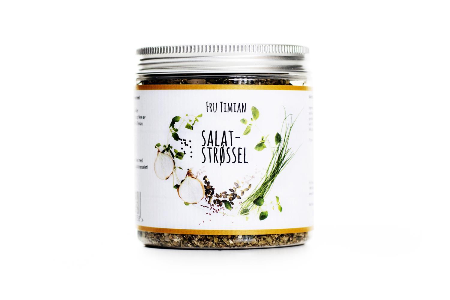 Salatstrøsselet er supert å drysse tørt over en salat eller å bruke i vinaigretten. Du må gjerne ta en klype å drysse over rugbrødet med ost på også.