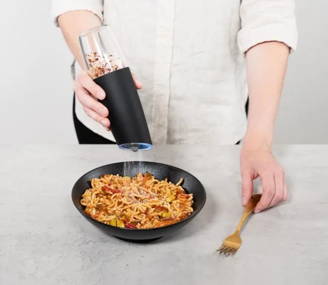 USB-C oppladbar krydderkvern med justerbar keramisk mekanisme.