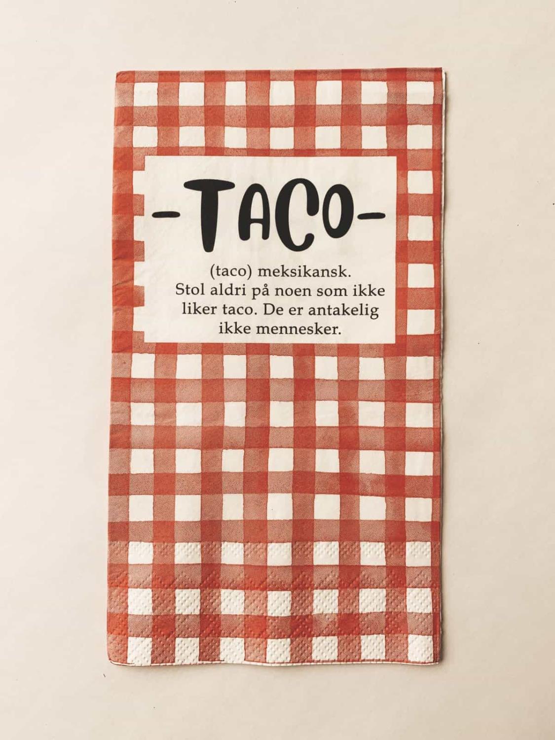 -Taco- (taco) meksikansk. Stol aldri på noen som ikke liker taco. De er antakelig ikke mennesker.