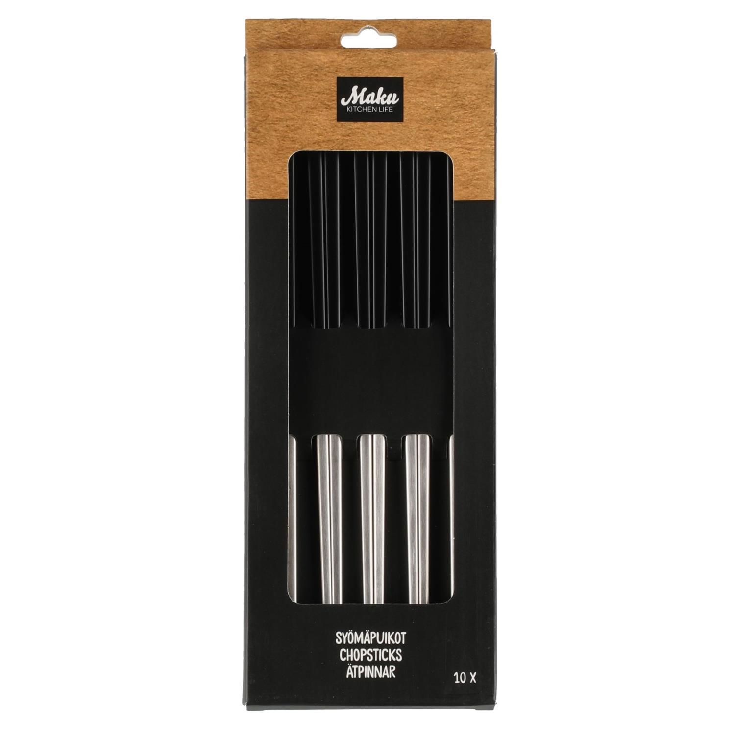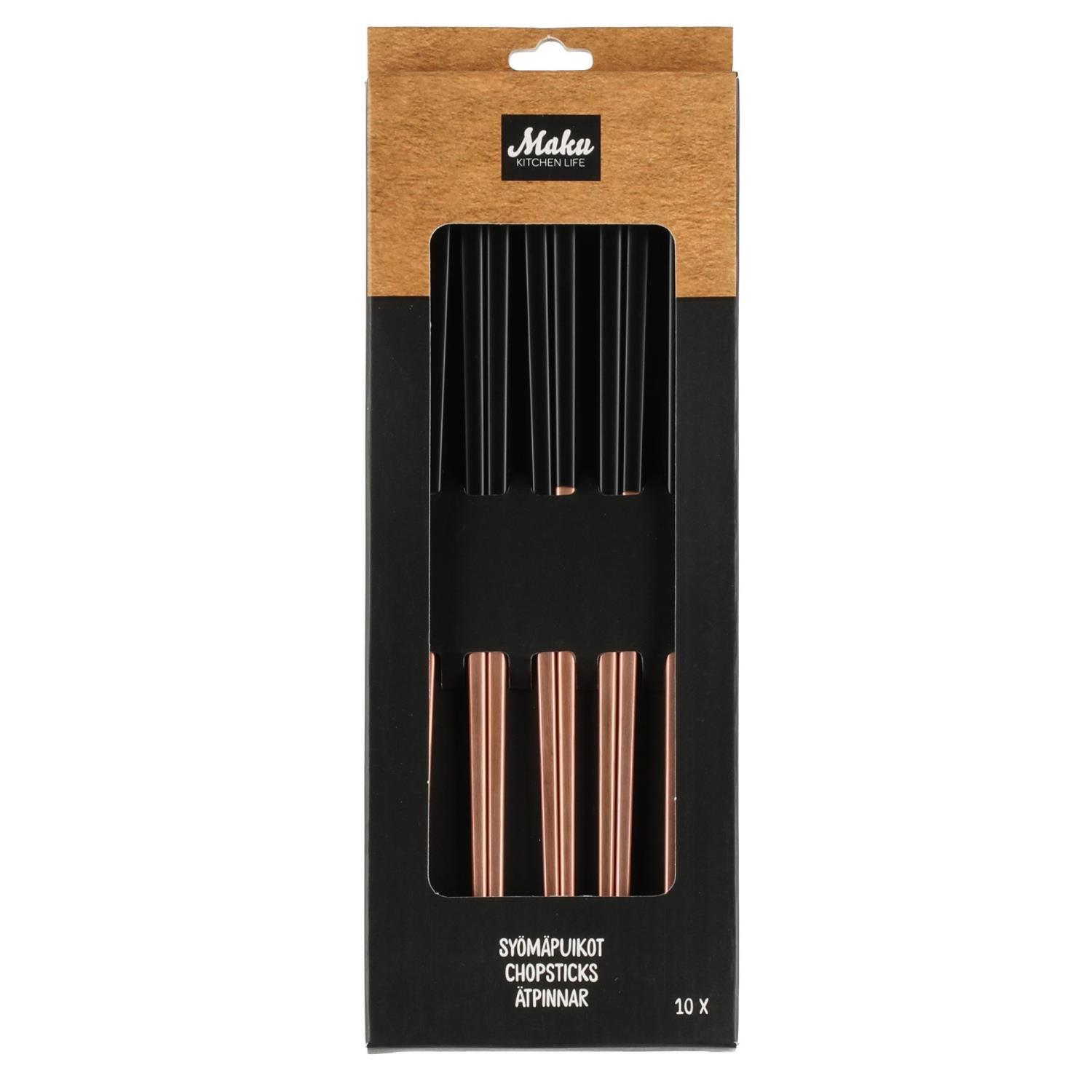 Spisepinner som matcher våre bestikksett. Eske på 12 pakker inneholder: 4 pakker spisepinner 10pk sort/sølv 4 pakker spisepinner 10pk sort/gull 4 pakker spisepinner 10pk sort/rosègull