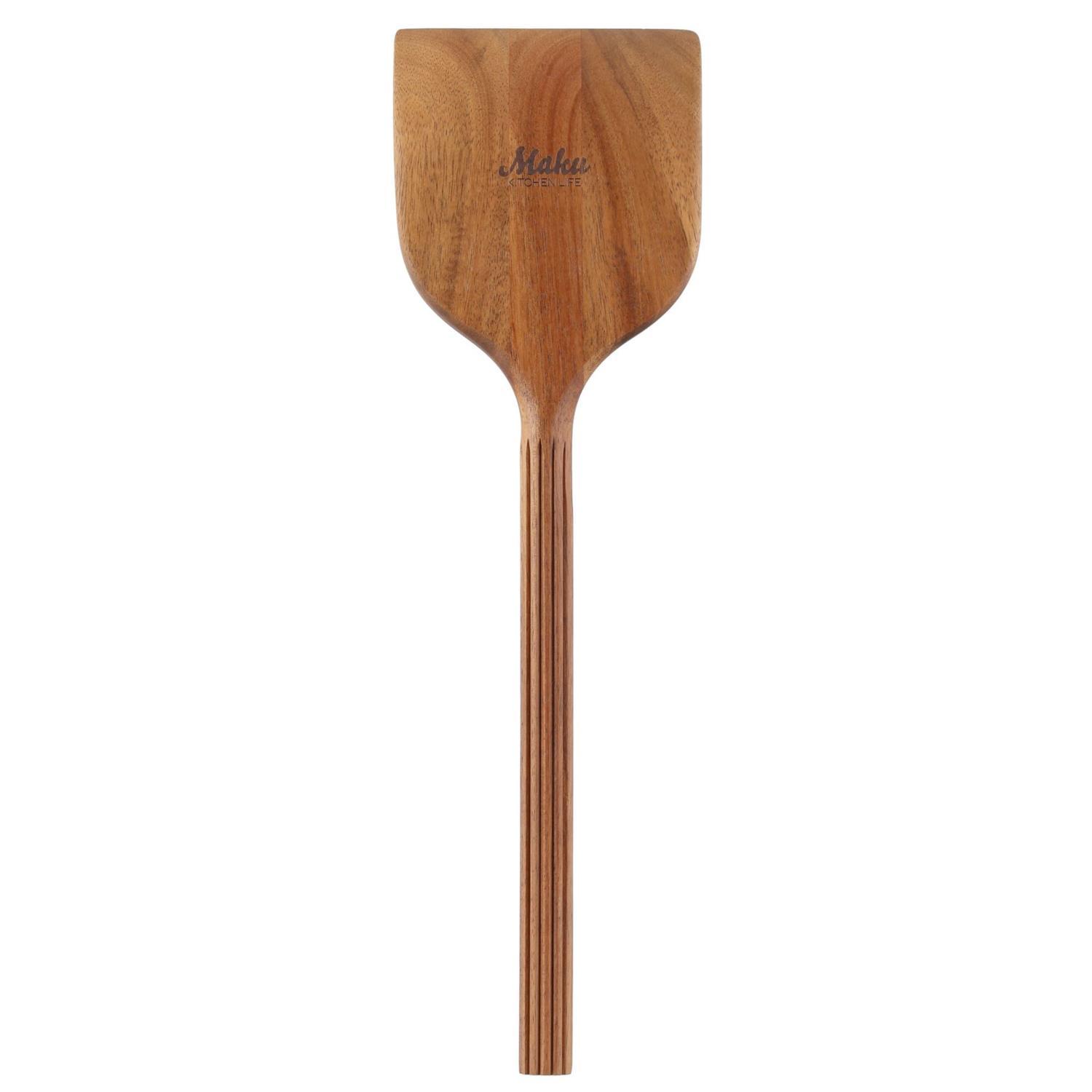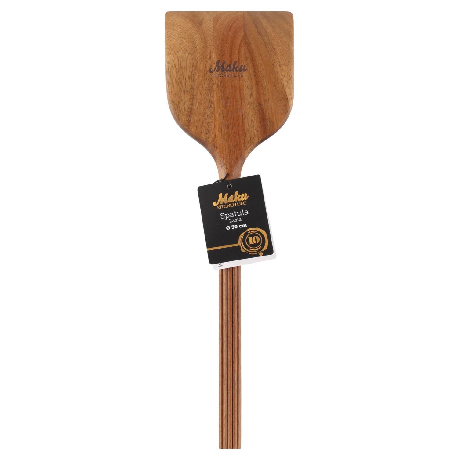 Maku stekespaden er laget av akasietre. Lengde 30 cm. Vask for hånd, tørk med en ren klut. Forleng produktets levetid ved å behandle det med vegetabilsk olje fra tid til annen.