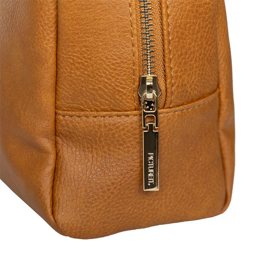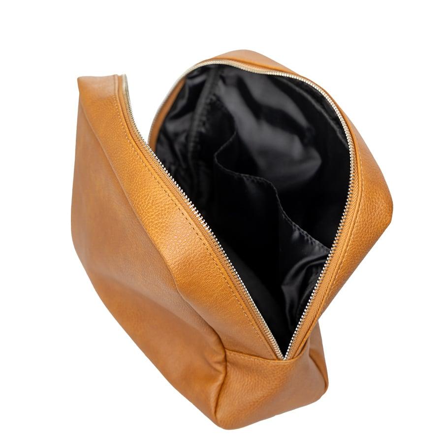 Materialet sørget for at toalettmappen holder seg stående når den er fylt, men er også mykt slik at den ikke opptar mer plass enn den trenger når den pakkes i baggasjen. Glidelåsen bøyer seg ned langs kanten og sørger for at du får god oversikt og tilgang til produktene dine. I tillegg har toalettmappen to sidelommer for praktisk oppbevaring av mindre gjenstander.