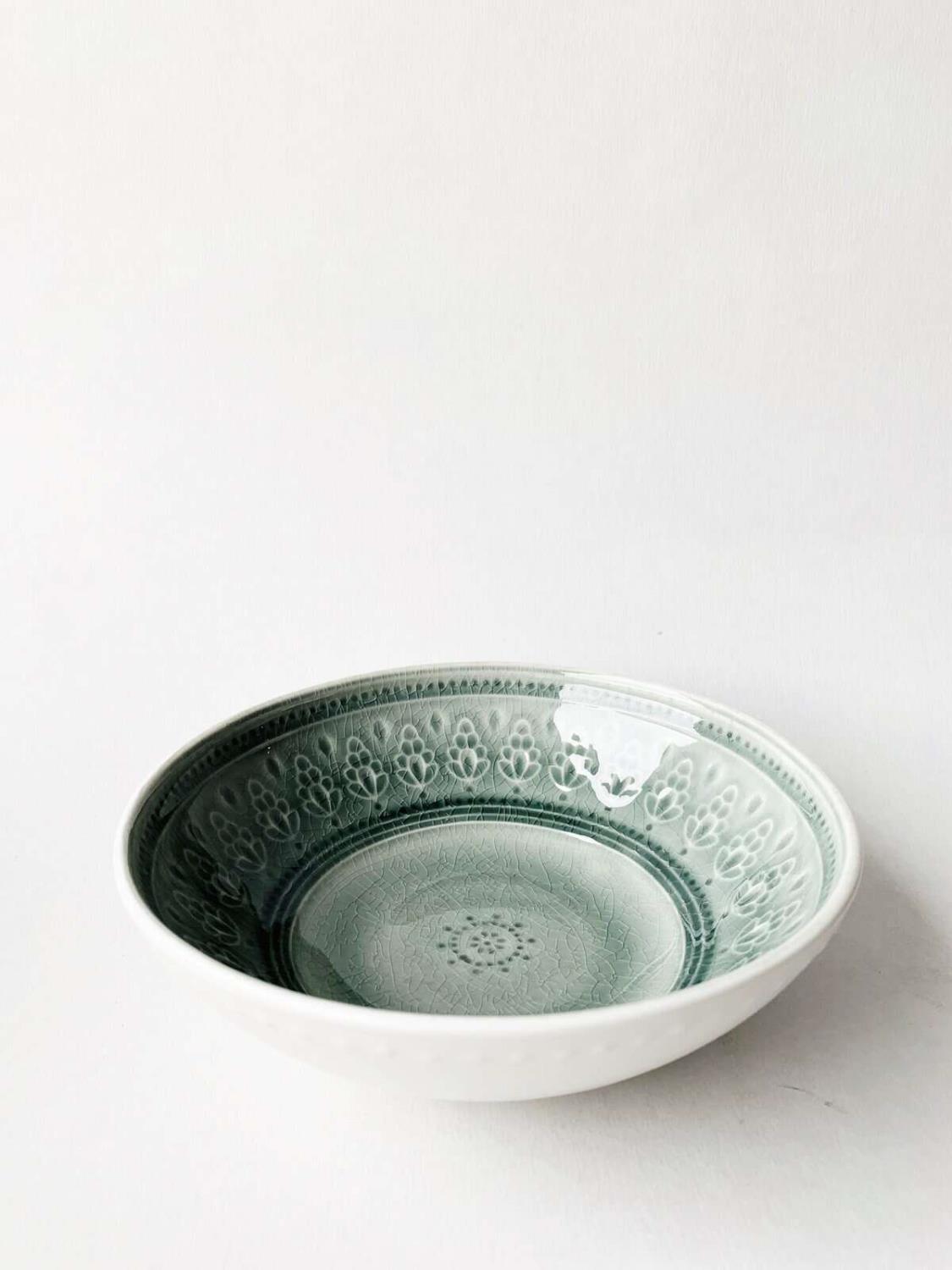 En vakker skål med mønster i keramikk. Med en diameter på 17,5cm er skålen perfekt til frokostmåltider som yoghurt og frokostblanding, men den passer også ypperlig til middagstilbehøret eller helgekosen.